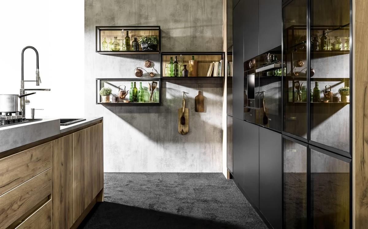 Kuchnia na wymiar przygotowana przez Archidom to także ergonomia i praktyczność na najwyższym poziomie. Wyspa kuchenna nie tylko pełni rolę miejsca do gotowania i przygotowywania potraw, ale dzięki swojej konstrukcji jest też doskonałym miejscem do spożywania posiłków czy krótkich spotkań przy kawie. Wykorzystanie naturalnego drewna na froncie wyspy sprawia, że przestrzeń nabiera przytulności, a surowy, betonowy blat dodaje jej industrialnego sznytu, który znakomicie komponuje się z matową czernią zabudowy.